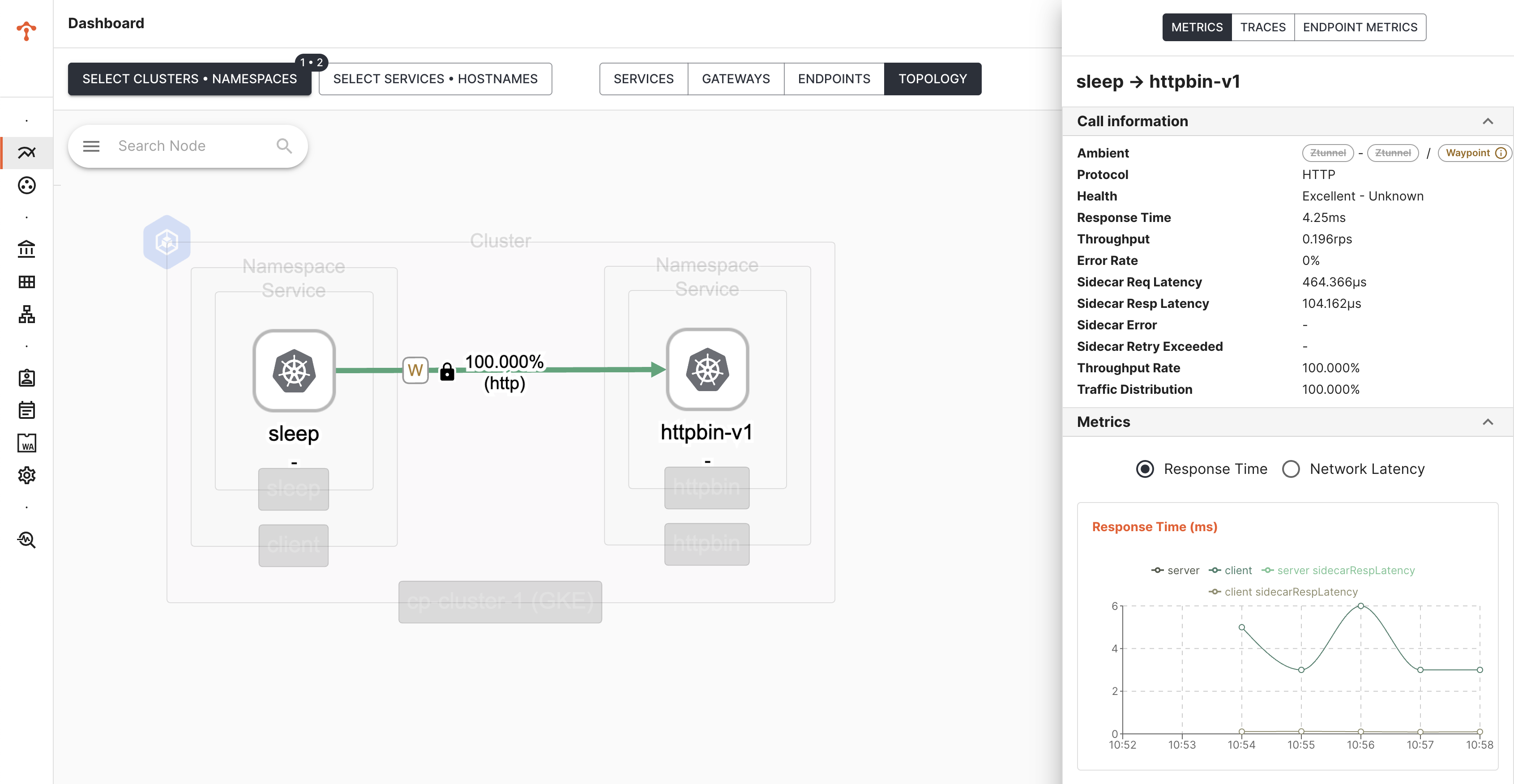 2025-12-12T06:47:32.631224Z info access connection complete src.addr=172.24.66.53:47830 src.workload="sleep-868c754c4b-7kn9x" src.namespace="client" src.identity="spiffe://cp-cluster-1.tsb.local/ns/client/sa/sleep" dst.addr=172.24.65.33:15008 dst.hbone_addr=172.24.165.149:8000 dst.service="httpbin.httpbin.svc.cluster.local" dst.workload="waypoint-64874dd676-tvjnr" dst.namespace="httpbin" dst.identity="spiffe://cp-cluster-1.tsb.local/ns/httpbin/sa/waypoint" direction="outbound" bytes_sent=105 bytes_recv=220 duration="4ms"